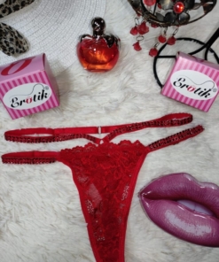 Delicada less de encaje con doble tira regulable y detalles de strass